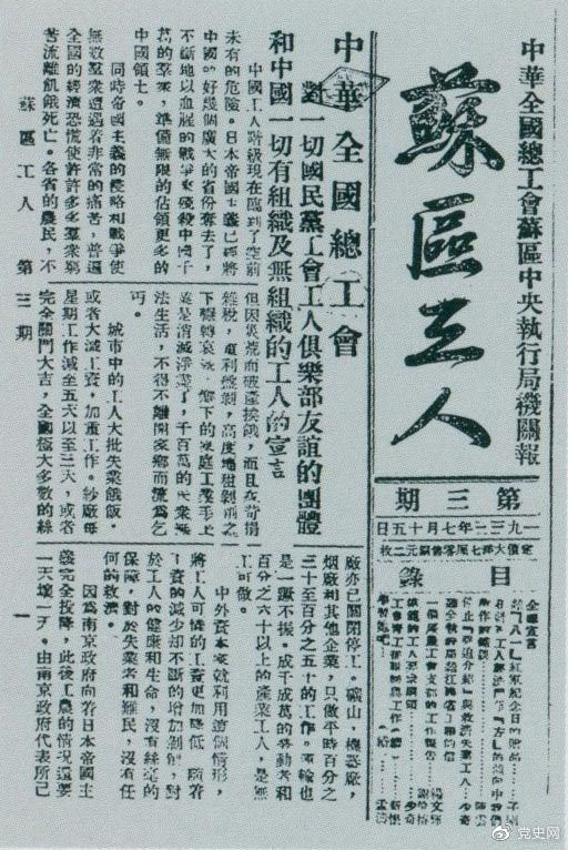 1933年7月15日,劉少奇在《蘇區(qū)工人》報第三期上發(fā)表《停止“強迫介紹”與救濟失業(yè)工人》和《模范的工人要求綱領(lǐng)》兩篇文章。